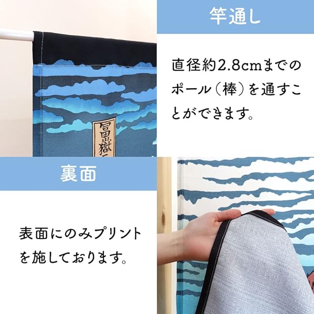 【注意点】※のれん棒、突っ張りポール等は付属しておりません。 ※カラーに関してはモニターの発色により多少異なる場合があります。 ※生地の特性や裁断・縫製作業での若干の歪みなどにより、仕上がりサイズに最大2cm程度の誤差が生じることがあります。