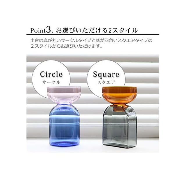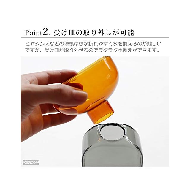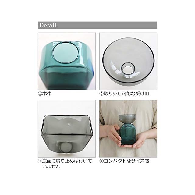 アーティストであり、アートディレクターでもある村上周氏(むらかみ あまね)を主体とするamabro(アマブロ)。古き良き日本の伝統あるアートをリスペクトし、生活シーンに溶け込むようなアーティスティックなプロダクトを心地良く、取り込みやすい形にして提案してくれます。ツートーンカラーが印象的な、受け皿と土台に分かれたフラワーベース。耐熱性のカラーガラスを使用して作られており、クリアなカラーのコンビネーションが目を惹きます。取り外し可能な受け皿が植物の根元を支えてくれ、水位調節がしやすいため、球根や観葉植物の水耕栽培に最適です。受け皿ごと持ち上げれば、植物に直に触れることなく簡単に水替え作業ができます。ボトルは口が小さいので、一輪挿しはもちろんアロマディフューザーボトルとしての使用もおすすめ。そのまま置いても絵になるオブジェのようなルックスが、お部屋を彩ってくれそうです。