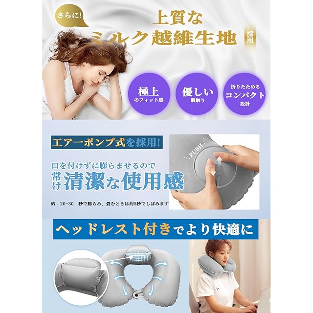 【優れた素材・洗濯可能】枕カバー肌に優れたポリエステルを採用して、肌触りが柔らかい。内の空気バッグは上質のTPUを作られ、ビニールよりも優れ、無毒・無臭の素材です。有効な睡眠の質を改善する。ネックピローが汚れた場合は、濡らした布などで拭き取り、よく乾かしてください。