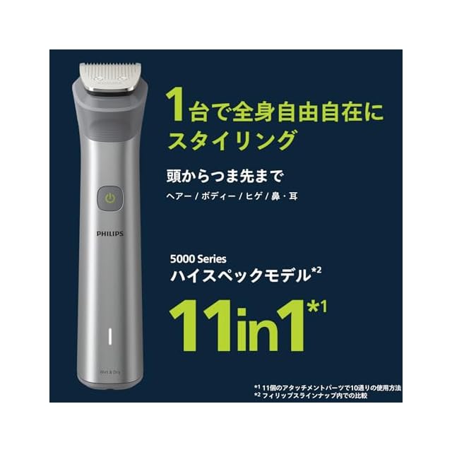商品名:フィリップス ボディ トリマー オールインワントリマーキット5000シリーズ ボディシェーバー (11 in 1*ボディー・フェイス・ヘアー用オールインワントリマーキット) MG5930/15 メタリックグレー