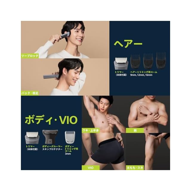 11 in 1*でボディー・フェイス・ヘアーのトリミング&スタイリング可能