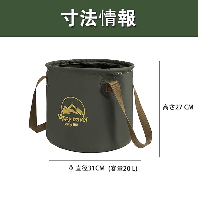 【製品内容】アウトドアキャンプ用折りたたみバケツ(グリーンタイプ)1 個。