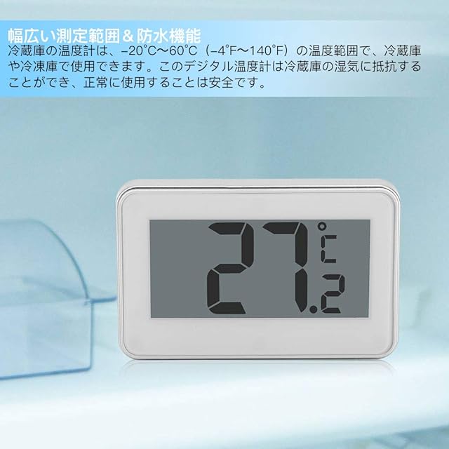 冷蔵庫温度計 冷凍室温度計 デジタル温度計 冷蔵庫デジタル温度計 デジタル温度計 防水 軽量 温度範囲-20°C〜60°C デジタル温度計 大型液晶画面 高感度 取り付け簡単 調整可能なスタンド マグネット付き キッチン用 冷凍庫と冷蔵庫用