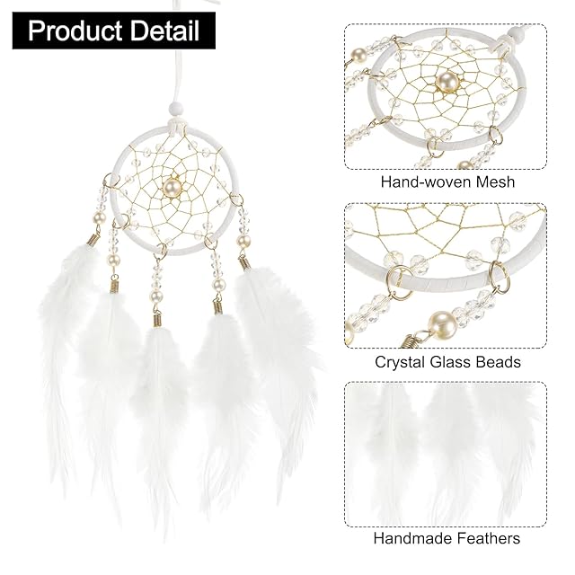 uxcell ドリームキャッチャー 小型 手作り 羽根ドリームキャッチャー用品 車用装飾 水晶ビーズ付き 壁掛け装飾 自宅 車用装飾品 女性 友人 ギフト用 ホワイト/シルバー 2個