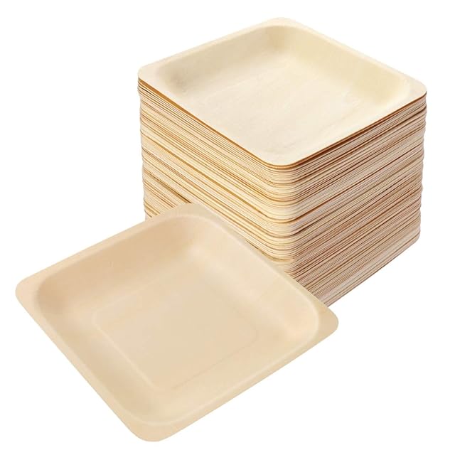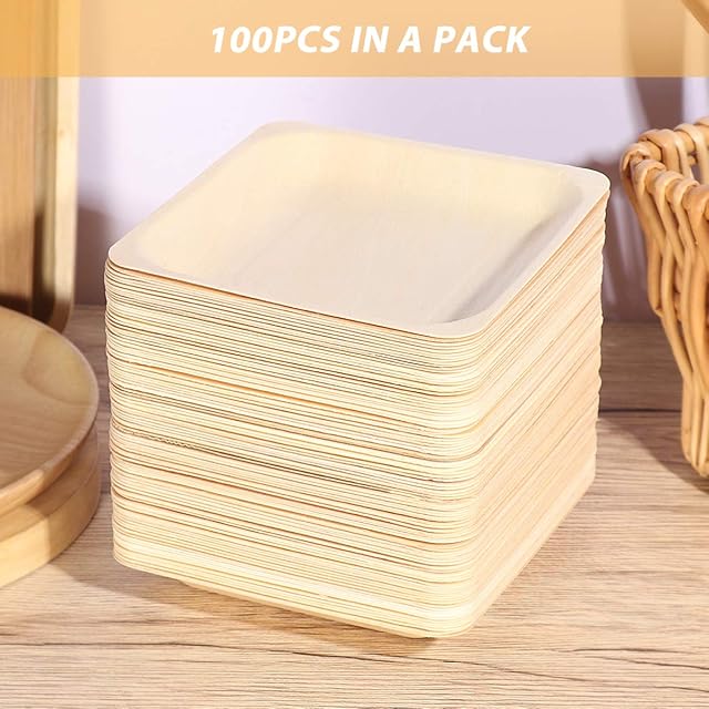 DOITOOL 使い捨て 皿 木製 プレート 木皿 角皿 おしゃれ お皿 高級 生分解性 環境にやさしい 木皿 パーティー用 アウトドア 食器 業務用 家庭用 100枚入り