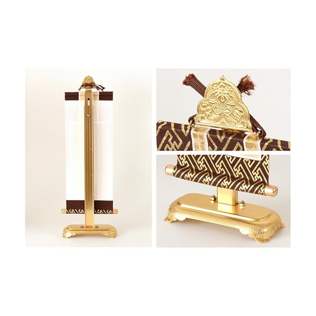 アルミ製の掛軸掛けです。<br> 仏壇内部に掛軸をお祀りする時に、仏壇に傷がつかないように、掛軸を設置する掛軸台です。<br> 背面でネジを緩めて、棒を伸縮させ、掛軸の高さに合わせます。<br> 掛軸上部のヒモを引っ掛けるだけです。<br> <br> 【サイズ】<br> (豆) 幅10.5cm×奥行4.8cm×高さ22cm <br> <br> ※高さ15cm~30cmの掛軸に最適<br> <br> 【材質】<br> アルミ製