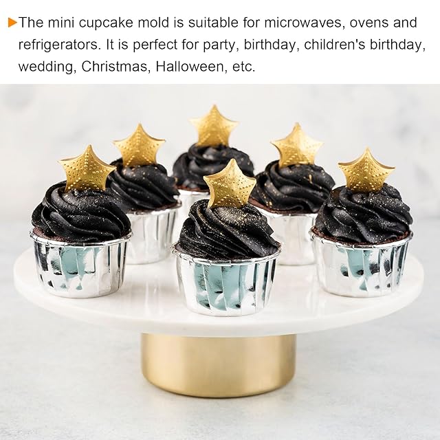 1. これらのカップケーキカップは、強くて丈夫なアルミ箔で作られています。オーブンに入れて直接焼いてください。ベーキングトレイは必要ありません。家族に安全です。<br />2. オイルプルーフでノンスティック、これらの箔紙ラッパーを使うのは簡単で、掃除の手間を省くことができます。<br />3. ミニカップケーキ型は、電子レンジ、オーブン、冷蔵庫に適しています。パーティー、誕生日、子供の誕生日、結婚式、クリスマス、ハロウィンなどに最適です。<br />4. 紙製の型は直接オーブンで焼くことができます。カップケーキトレイは必要ありません。時間とエネルギーを節約します。