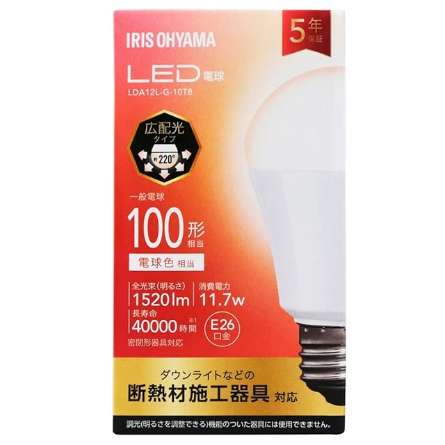 商品名:アイリスオーヤマ LED電球 E26 広配光 100W 電球色 LDA12L-G-10T8