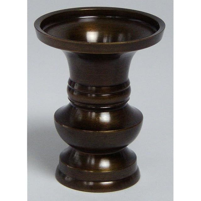 ◆真鍮に漆を焼き付け塗装した耐久性の高い品です。 黒色に近い深い茶色で、ほど良い光沢も有り どのお仏壇にも似合う色です。 ◆金色の磨き仕上の品と違い、日頃のお手入れはほとんど必要なく、 時々から拭きをしていただく程度で、長くお使いいただけます。 ◆年数が経ち表面の艶が弱くなってきた場合は ロウソクのロウを摺りこんでいただくと 艶がよみがえります。 ◆仏壇用の花立です ◆各宗派でお使いいただけます ※真宗大谷派の場合は磨き仕上の品をおすすめします サイズ:高さ94ミリ 口径72ミリ (サイズに多少の誤差があります) 材質:真鍮製 漆焼付け塗装 ※花立て1個の価格です。(1対の場合は注文数を2個にして下さい)