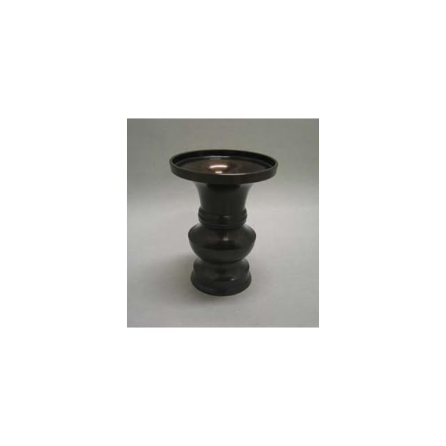 この仏壇用花瓶は、真鍮製でクラシックなデザインの円形花瓶です。無地でブラックの色付けで、手塗りしたフィニッシュを施しています。サイズは径9.3cm、高さ12.5cmの4.0寸で、重量は220グラムです。屋内で使用することを推奨します。