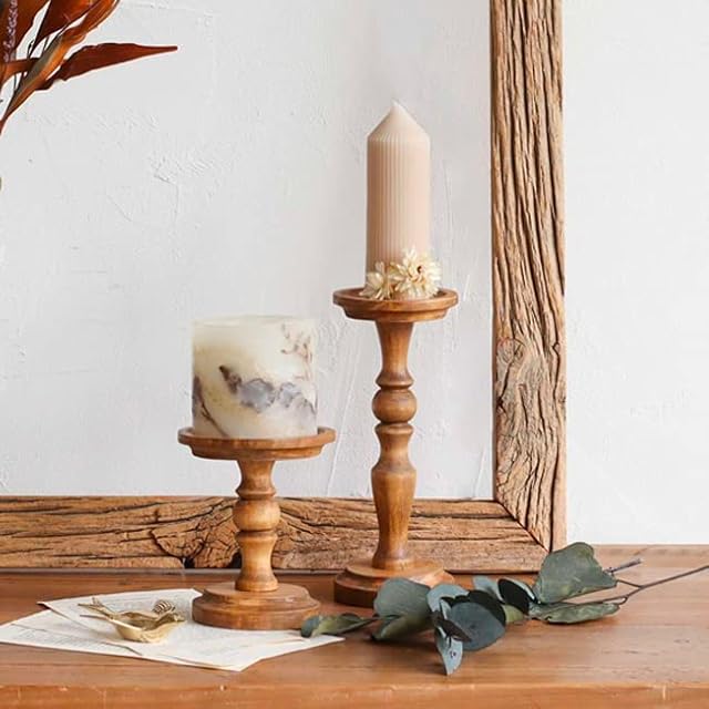 天然木の風合いを活かしたアンティーク風のキャンドルスタンド(Sサイズ)