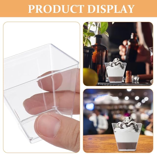 透明素材 --- 透明なプラスチックで作られているため、デザートの層や色が際立ちます。多用途: アイスクリーム、パフェ、フルーツサラダ、前菜などを盛り付けるためのこの透明なデザートカップは、さまざまなイベントや機会に最適です。