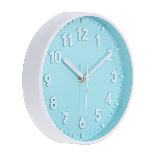 PATIKIL 20 cm 壁掛け時計 3D数字 クォーツ電池式 サイレント ノンカチカチ 丸い掛け時計 オフィス 寝室の装飾用 ライトブルー