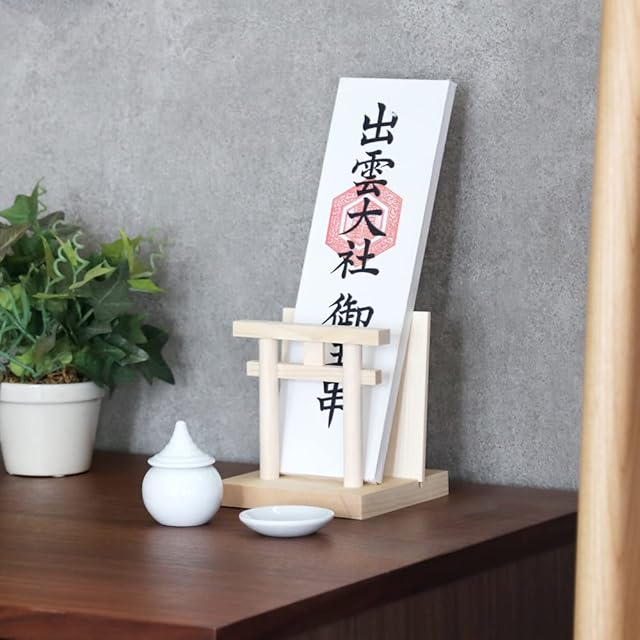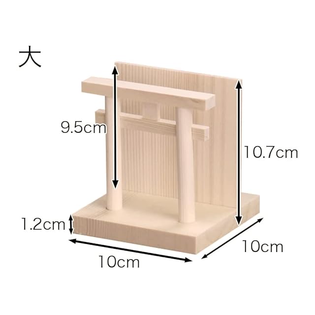 シンプルな国産のお札差しです。<br> 板と鳥居を差し込むだけで簡単に組み立てられます。<br><br> サイズ 大:幅10cm×奥行10cm×高さ10.7cm<br><br> ※天然木ですので、サイズと木目の模様が違う場合があります。