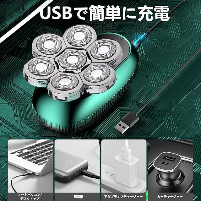 【7つ柔軟なロータリーシェーバーヘッド】 スキンヘッド シェーバーは新型7つロータリーブレードの設計で、シェービング面積が拡大し、カミソリ時間が節約されます。スキンヘッド用シェーバーは7Dロータリーシェーバーヘッドを持ち、頭、顔、首、顎のすべての方向の輪郭にピッタリ。360度の回転刃は髪をすばやく取り除くことができ、よりスムーズな快適な徹底的なシェービング体験を提供します。