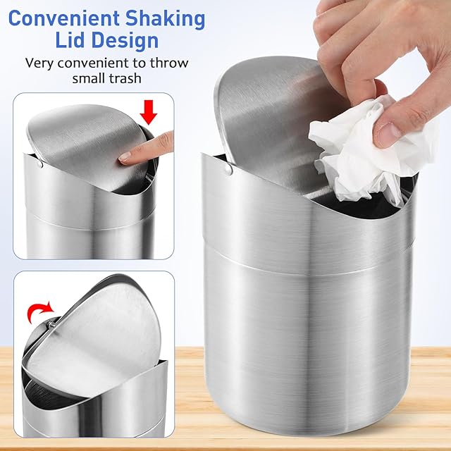 ledmomo 卓上ゴミ箱 蓋付き スイング式 1.5L 車用 ミニゴミ箱 ステンレス おしゃれ ゴミ箱 デスク お手入れ簡単 丸洗い可能 フタ取り外し可能 蓋付き ダストボックス