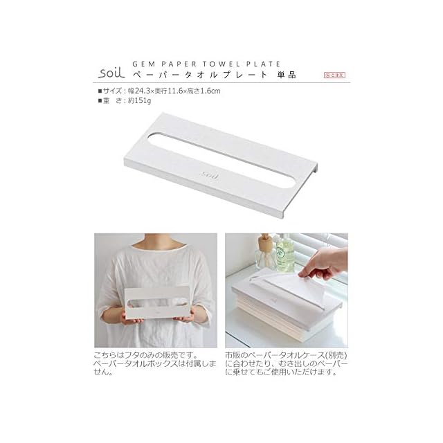 【ご注意】こちらはプレート(フタ)のみの販売になります。 ペーパータオル、ペーパータオルケースは付属しません。 微量の粉が出てきますが、材質の特性上、自然に出てくるものですので品質上問題ございません。 水洗いできません。