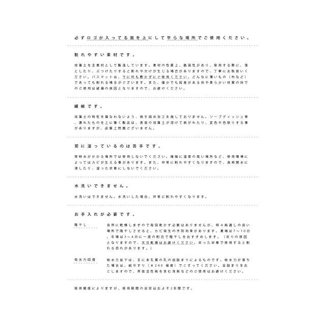 【ご注意2】素材の劣化につながりますので、長時間水に浸さないでください。 時々風通しのよい場所で陰干ししてください(割れの原因になりますので、天日乾燥はお避けください) 使用後は、よく乾燥させてから保管してください。
