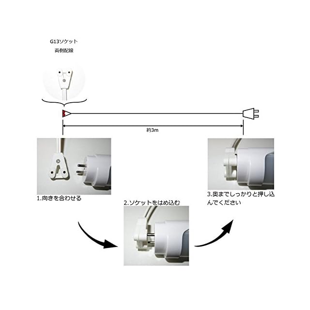 商品名:G13用ソケットプラグコード コンセント直結ACプラグコード TK-LTSC04 片側給電方式LED蛍光灯用 はめ込み式 仮設照明用