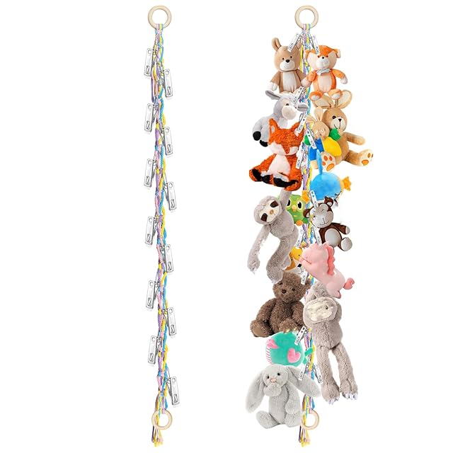 【取り付け簡単】このロープ収納の金属クリップは表面が滑らかで、錆や腐食に強く、堅牢性と耐久性に優れています。長いハンドルデザインにより、ぬいぐるみを持ちやすく、取り外しも簡単です。壁掛けフックが装備されており、より強い耐荷重性があり、おもちゃが滑り落ちるのを防ぎます。