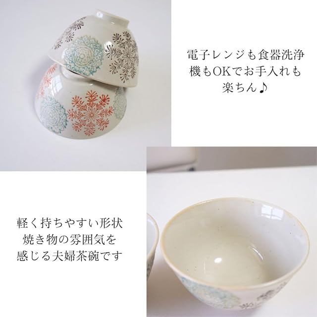 商品名:夫婦茶碗 波佐見焼 ペアセット 勲山窯 幾何花紋 飯碗 日本製 はさみやき はさみ焼き めおと