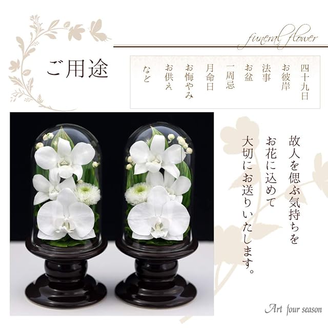 アートフォーシーズン■仏花(茶系)Mini胡蝶蘭ミニglass 【対デザイン2個SET】プリザーブドフラワー