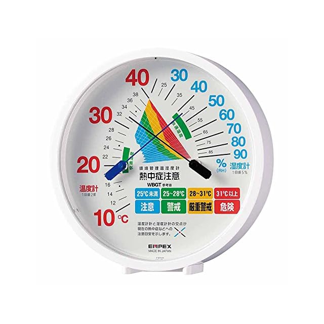 EMPEX (エンペックス) 気象計 温度湿度計 環境管理温湿度計 【熱中症注意】 置き掛け兼用 日本製 ホワイト TM-2484 12.4x12x2.7cm