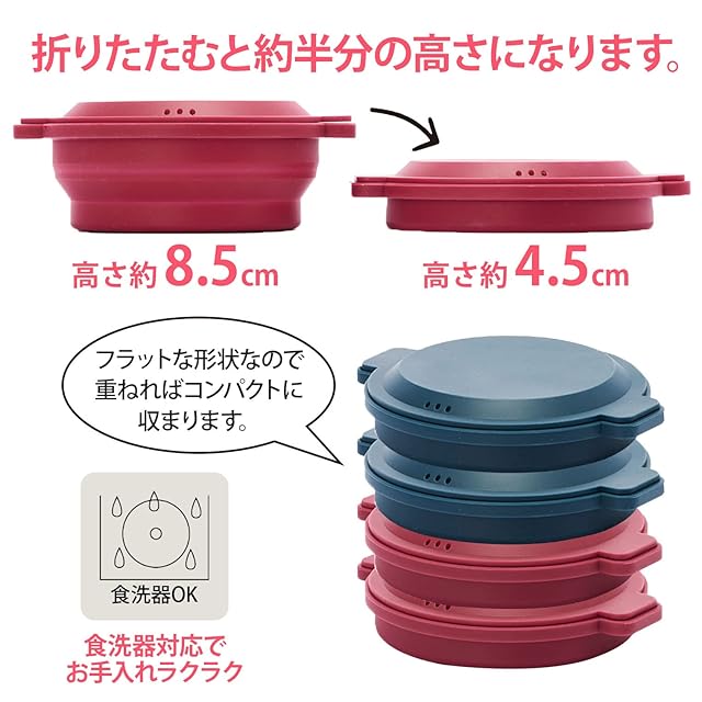 SG-04 tone フタがお皿になるシリコンスチーマー丸型 電子レンジ調理 蒸し器 レシピつき 折りたたみ可能 食洗機対応