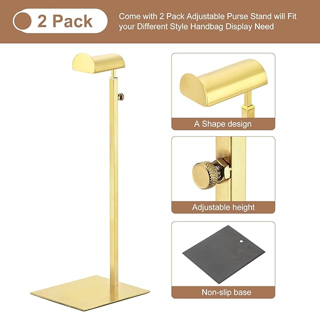 2個:金属製ハンドバッグディスプレイスタンドでハンドバッグや財布をスタイリッシュにディスプレイしましょう。光沢のある電気メッキ仕上げが、どんな場所にも洗練された雰囲気を添えます。長持ちする色あせしない仕上げにより、ハンドバッグスタンドは何年も新品同様の状態を保ちます。自宅、小売店、ショールームに最適です。