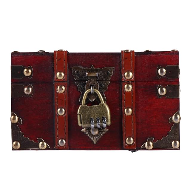 FRCOLOR 宝箱 ジュエリー箱 レトロ宝箱 アンティーク 宝石箱 鍵付き 南京錠付き 海賊 木箱 小物入れ アンティーク箱 貯金箱 見せる収納 撮影小物 ジュエリーボックス アクセサリー入れ 暗赤色
