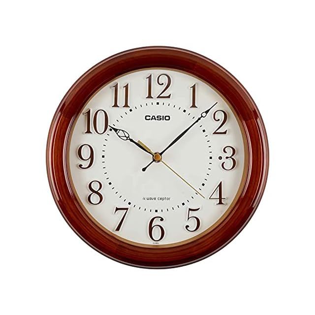 CASIO(カシオ) 掛け時計 電波 ブラウン 直径24cm アナログ 木枠 夜間秒針停止 置き掛け兼用 IQ-880J-5JF