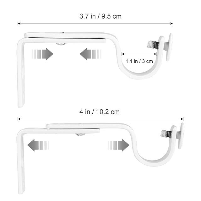材質:鉄。 長さ:約9.5-10.2cm。18~22MMのカーテンロッドに対応。ネジノブは固定されており、ポールのサイズに応じて締め具合を調整でき、取り付けはしっかりしています。