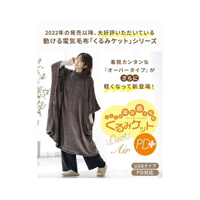 [山善] 電気毛布 どこでも電気着る毛布 くるみケット(USBタイプ) オーバー AIR コードレス 着るこたつ バッテリー別売 モカ YKPD-15