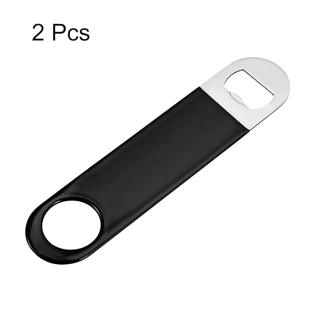uxcell ボトルオープナー 2個セット 178mm x 41mm x 4mm ステンレススチール製フラットビールボトルオープナー バーテンダービールオープナー バー パーティー レストラン用(ブラック)