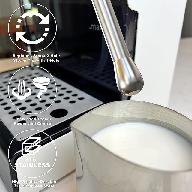 スチームチップの変更により、より良い方向制御とスチームのパワーが可能になり、毎回シルクのように滑らかなミルクになります。