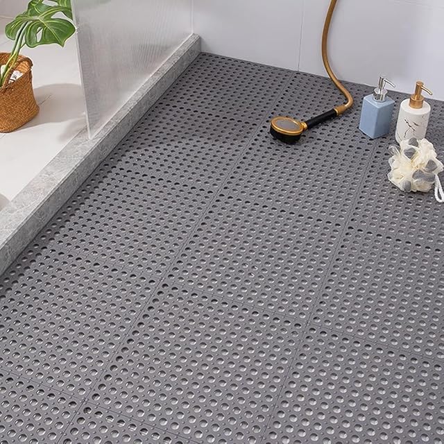 Oulou お風呂マット 滑り止め 大判 浴室マット すべりどめ 床 シート 洗い場マット 風呂用すのこ DIYマット 抗菌速乾 無臭 転倒防止 介護用 柔軟快適 グレー 12枚