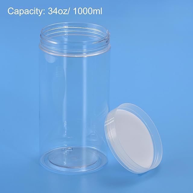 uxcell 丸型プラスチックジャー 透明ネジ式上蓋付き クリア 空容器 収納 整理用 広口 1000ml 2個