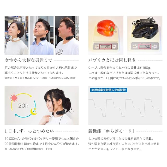 首周りサイズ 最小:約37cm 最大:約50cm、重量 150g