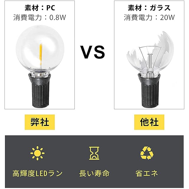 室内や屋外の照明、装飾照明、家庭、花園、入り口、花園、結婚式、誕生日などの各種祝日の照明に非常に適しています。注意:本製品は高圧電球であり、低圧ストリングライトには使用できない。