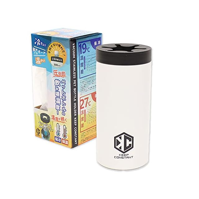 1年中使える手放せない便利さ! 冷・温どちらも飲み頃の温度を長時間キープ。 オフィスやアウトドア、ペットボトルを入れるだけ! 保冷:19℃ 保温:27℃ ■生産地:中国 ■素材・成分:【仕様】 本体/内ビン:201ステンレス 胴部:ステンレス鋼(焼付塗装) フタ/ポリプロピレン、TPE ポーチ/ポリエステル、合成ゴム 【使用上の注意】 本品は500~600ml用ですが、形状によってはご使用になれない場合があります。 ●ご使用の際、本体のフタ部分は確実に閉め、ペットボトルが落ちないことを確認してからご使用ください。 ●温度の高い液体が入ったペットボトルを使用する際は、やけどにご注意ください。 ●製品外側と、製品内部ペットボトル内液体の温度に差があります。飲んだ際に温度差に気を付けてください。 ●使用中、保管の際は、火気、高温、多湿の状況下に置かないでください。 ●小さなお子様の手の触れない場所で、ご使用、保管ください。 ●落下や衝撃、カバンやリュックなどに入れた状態は、本体の傷、へこみの原因となります。 ●ペットボトル飲料以外のご使用、また直接液体を入れる事、直接本体に口をつける事をしないでください。 ●製品本体を直接冷蔵庫、冷凍庫、電子レンジ、直接火にかけたりしないでください。 ●食器洗浄機、食器乾燥機のご使用はしないでください。 ●お手入れは中性洗剤を使用して、水洗い後速やかに柔らかい布で拭き取って、水気を残さないように乾燥させてください。 ●クレンザーなどの研磨剤塩素系の漂白剤、タワシ、金属タワシなど傷がつくものはご使用しないでください。