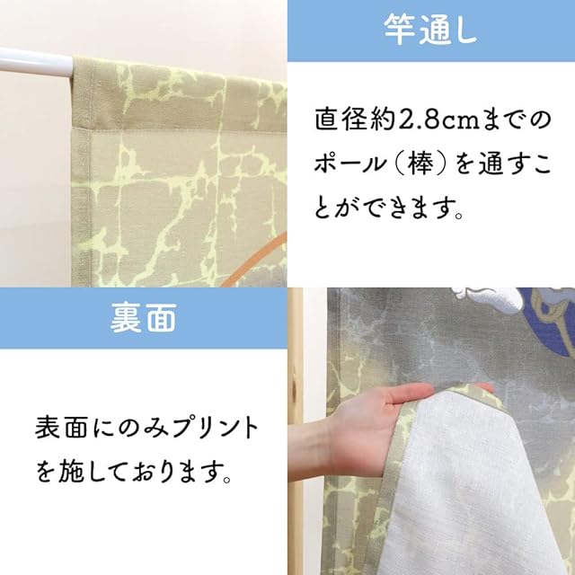 【注意点】※のれん棒、突っ張りポール等は付属しておりません。 ※カラーに関してはモニターの発色により多少異なる場合があります。 ※生地の特性や裁断・縫製作業での若干の歪みなどにより、仕上がりサイズに最大2cm程度の誤差が生じることがあります。