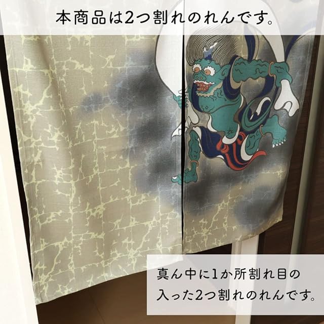 商品名:のれん工房 のれん 風神雷神 和風 和モダン おしゃれ 店舗用 飲食店 本縫い N 幅85×丈150cm 99830
