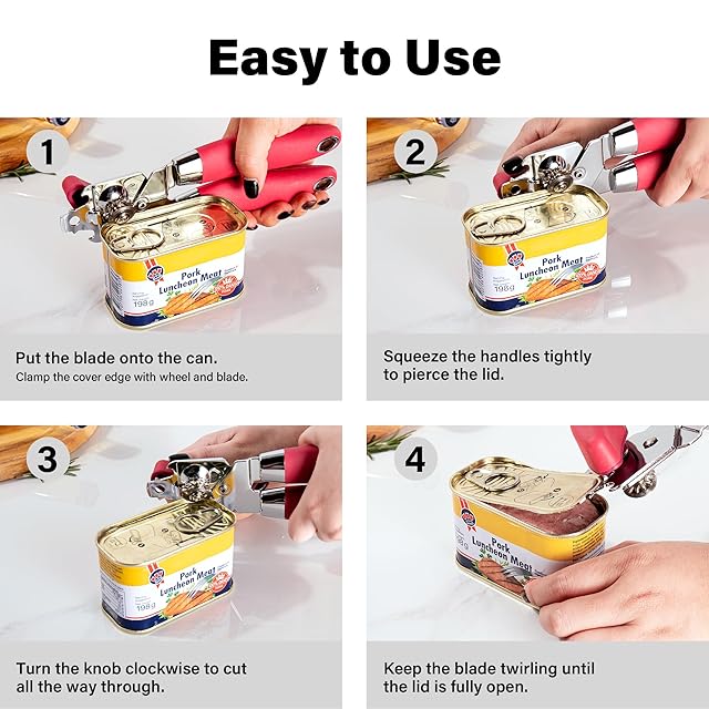 缶切り 手動 頑丈 缶切り 滑らかなエッジ ステンレス 鋭い刃 良い ソフトグリップ 滑り止めハンドル 赤