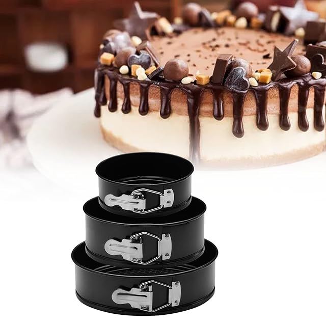 ケーキ型 底取れ 円形活底 ロックケーキの型 チーズケーキパン ノンスティック アイアンケーキ型セット スプリングフォームパン 洗濯機洗い可能 S M L 3サイズ 3個 ブラック ベーキングツール
