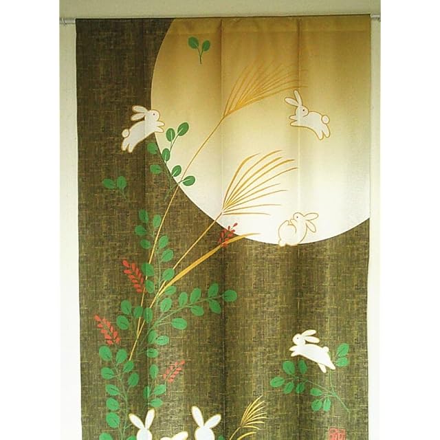 デザイン: うさぎのパターンとゴールドの色合いが組み合わされたこののれんは、ダイニングルームなどの空間を明るく華やかに装飾します。