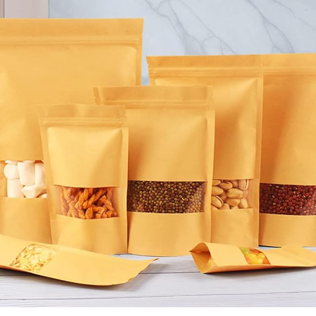Itisyou 密閉袋 袋 食品収納袋 ジップ袋 自立袋 お菓子 クラフト紙袋 密封袋 窓付き紙袋 クラフト袋 9×14cm 100個入り