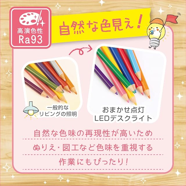卓上スタンド照度 JIS規格A形相当で、学習に最適演色性Ra93を実現し、自然な色見え