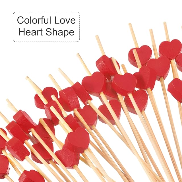 uxcell カクテルつまようじ 120 mm 竹 ハート 長いフルーツスティック装飾 カクテル串ピック ドリンク 前菜 フルーツ用 レッド 100個