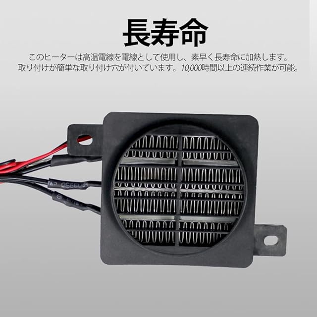 仕様<br /> 条件100真新しい<br /> カラーブラック<br /> オプションのタイプ<br /> 1定格電圧12V定格電力150W<br /> 2定格電圧24V定格電力150W<br /> 3定格電圧24V定格電力250W<br /> 4定格電圧12V定格電力100W<br /> 取り付け穴の距離約87mm <br /> 取付穴の直径約 4mm <br /> 製品サイズ約60×60×42mm / 2.4インチ×2.4インチ×1.7インチ<br /> 環境温度範囲-565<br /> パッケージ重量約160g<br /> 数量1個<br /> パッケージは以下を含みます<br /> 1×PTCヒーター<br /> <br />
