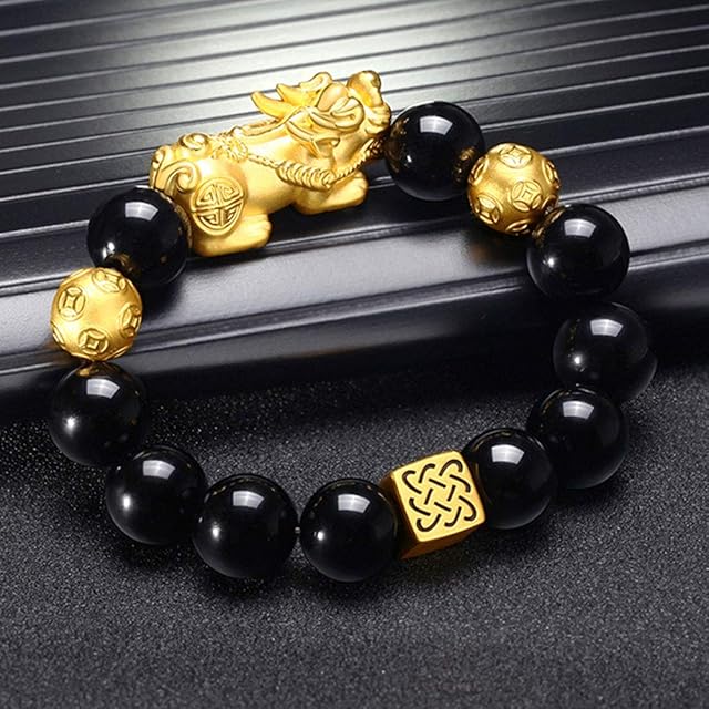 【数珠ブレスレット】素材:貔貅 数珠 パワーストーン 18金メッキ 内周約17-19㎝ 幅12*10mm伸び縮み可能